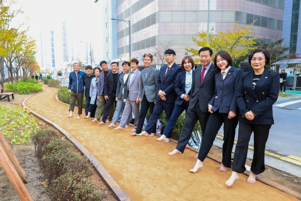 또 주민들이 다양한 방식으로 걷기 운동을 할 수 있도록 천연광물인 제올레스트볼길(25m)과 황토볼지압길(20m)도 함께 조성해 맨발 걷기의 재미와 효과를 극대화했다. 이곳에는 세족장과 신발장 등 부대 시설도 설치해 맨발 걷기 이용자들의 편의를 도모했다.
