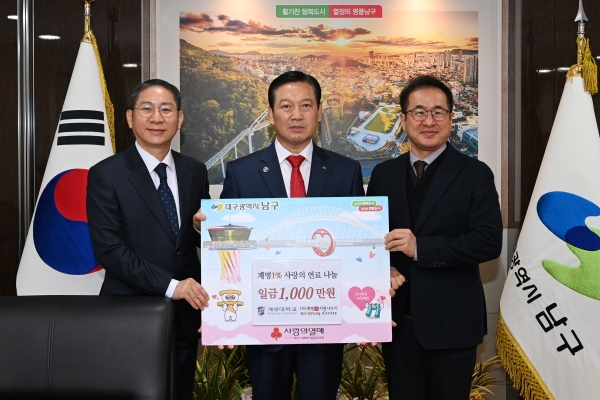 조재구 남구청장은 “지역민을 위해 기부해주신 (사)계명1%사랑나누기의 소중한 나눔에 감사드린다”며 “기부하신 뜻대로 관내 취약계층에 잘 전달될 수 있도록 노력하겠다”라고 전했다.