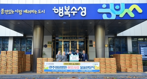 천주성삼병원(병원장 유성수)은 지난 27일 어려운 이웃을 위해 돕기 위해 마련한 라면 500박스(1,150만원 상당)를 대구 수성구청에 기탁했다.
