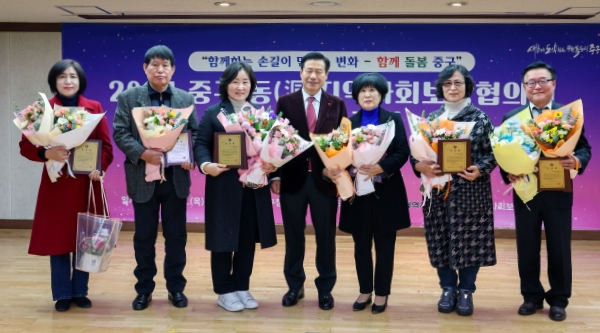 이날 지역복지발전에 기여한 유공자 6명에 대한 표창 수여식을 진행해 지역사회보장협의체 활성화와 발전에 기여한 위원을 격려했다. 이어 ‘함께,돌봄,중구’를 위한 한해 동안의 1마을 1특화사업 우수사례 공유와 화합의 장 등 순으로 진행됐다.