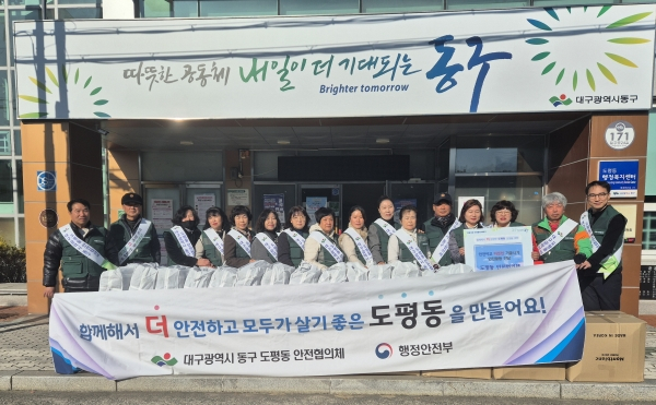 대구 동구 도평동 안전협의체는 지난 17일, 관내 저소득 취약계층 45세대에 소화기와 이불을 지원했다. 이번 지원은 ‘읍면동 스마트 복지·안전 서비스 개발 지원’ 사업의 일환으로 진행됐다. 윤종숙 도평동장은 “갑작스러운 화재 및 한파로 어려움을 겪고 있는 취약계층이 따뜻하고 건강한 겨울을 날 수 있도록 작게나마 도움이 되기를 바란다.”며 “안전협의체 회원들의 노고에 감사드리며 안전문화 확산에 지속적인 관심을 부탁드린다.”고 말했다.