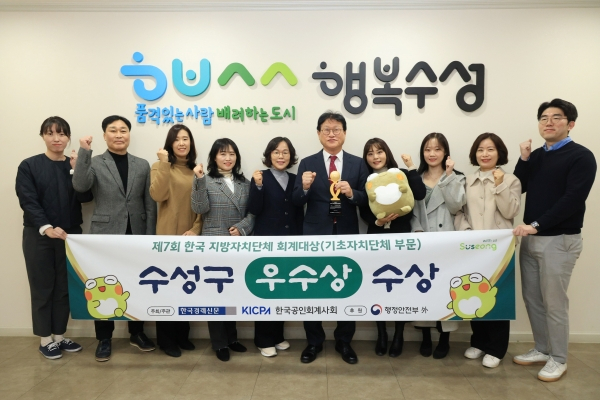 대구 수성구(구청장 김대권)는 ‘제7회 한국 지방자치단체 회계대상’ 기초자치단체 부문에서 ‘우수상’을 수상했다고 18일 밝혔다.