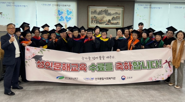 | ↑↑ 대구 북구청은 지난 24일 화요일, 산격종합사회복지관에서 제1회 성인문해 수료식을 하였다. |