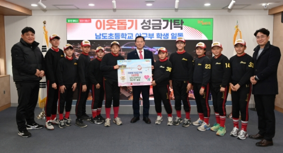 남도초등학교 야구부 일동이 지난 12월 26일, 대구 남구청을 방문해 성금 150만원을 기탁했다.