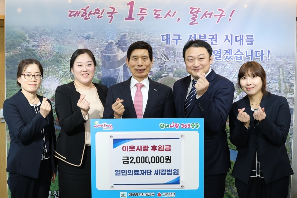 | ↑↑ 일민의료재단 세강병원, 달서구에 이웃사랑 후원금 기탁 |