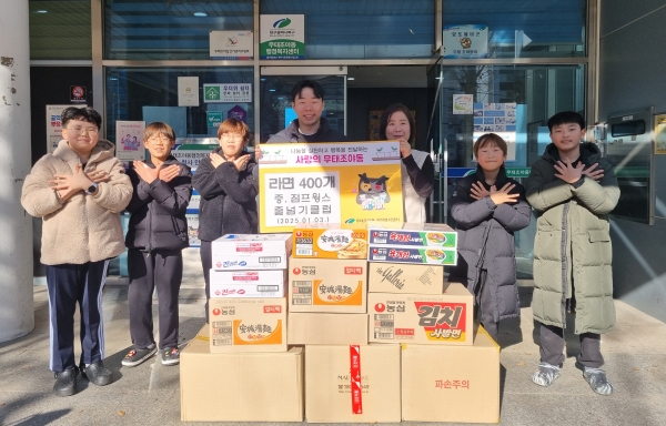 대구 북구 서변동에 위치한 점프윙스줄넘기클럽(대표 민경수)은 1월 3일(금) 무태조야동 행정복지센터(동장 최성옥)를 방문하여, 선생님과 원생들이 기부한 라면 481개를 기탁했다.