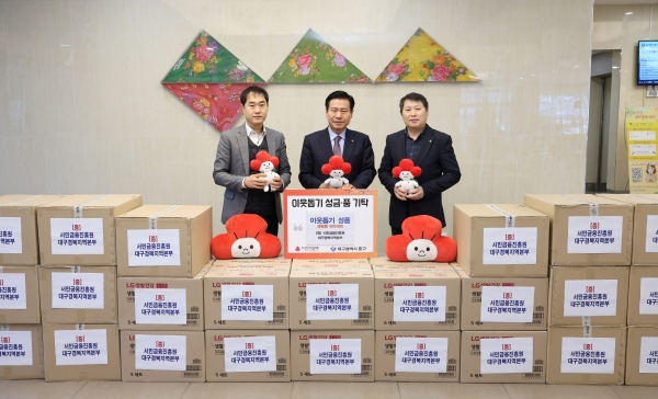 서민금융진흥원 대구경북지역본부(본부장 이정환, 중구 남산동 소재)와 신용회복위원회 대구경북지역본부(본부장 이시형)는 7일 대구 중구청을 방문해 이웃돕기 성품으로 1천만 원 상당의 생필품 세트 600개를 기탁했다.