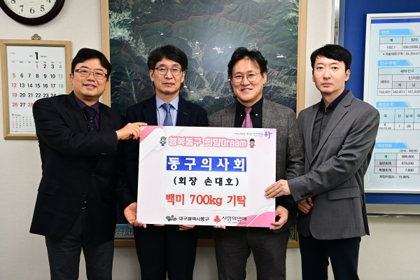 정의관 부구청장은 “매년 지역주민들을 위해 따뜻한 나눔 활동을 펼쳐주시는 손대호 회장님을 비롯한 동구의사회에 깊은 감사의 인사를 드린다.”며 “기탁해주신 백미는 소중히 전달하겠다.”고 했다.