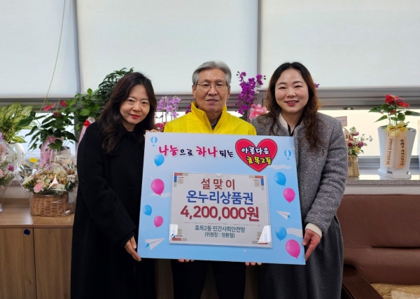 대구 동구 효목2동 민간사회안전망위원회(위원장 정환철)는 지난 20일, 설 명절을 맞아 온누리상품권 420만원을 동 행정복지센터에 기탁했다.