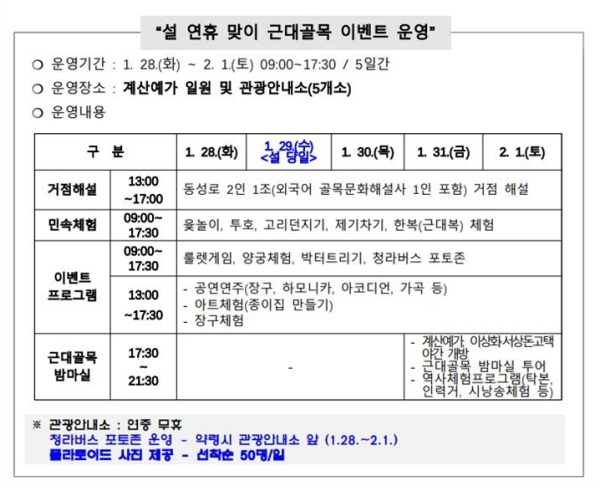 | ↑↑ 근대골목 체험행사 이벤트 일정표 |