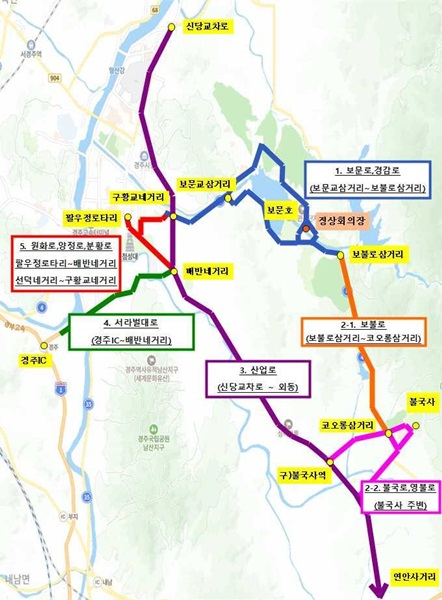사업 대상지는 경감로, 보문로, 보불로, 불국로, 산업로, 서라벌대로 등 5개 노선으로, 총 사업비 247억 원(국비 15억 원, 도비 129억 원, 시비 103억 원)이 투입된다.