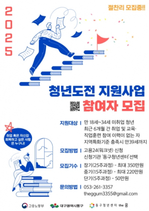 대구 동구청(구청장 윤석준)은 ‘2025년 청년도전 지원사업’ 참여자를 모집하고 있다.