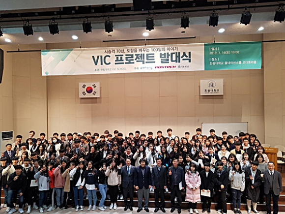 이날 발대식에는 송경창 포항시 부시장과 장순흥 한동대학교 총장을 비롯해 포항시와 포스텍, 한동대 관계자, V.I.C스쿨 프로젝트에 참가하는 지역 내 대학생, 고등학생 등 120여 명이 참석했다.
