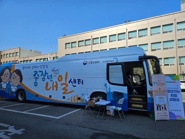 대구 남구는 지난 24일 노사발전재단 중장년내일센터 및 남구일자리지원센터 직업상담사와 함께 남구청 주차장에서 「이동식 취업상담실」을 운영하여 중장년 구직자 일자리 상담과 교육 지원 정보 등을 제공하였다.