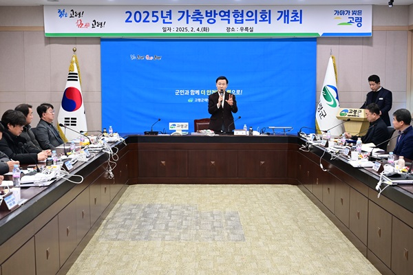 고령군 재난안전대책 본부장(군수 이남철)은 2월4일(화) 16시 고령군청 우륵실에서 가축방역대책을 위한「2025년 고령군 가축방역 협의회」를 개최하였다.