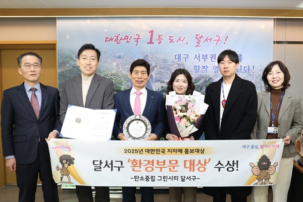 대구 달서구(구청장 이태훈)가 지난 5일 「2025 대한민국 지자체 홍보대상」에서 환경 부문 대상을 수상했다고 밝혔다.