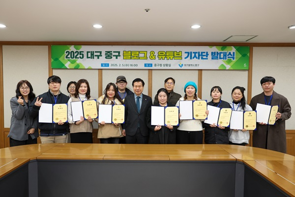 대구 중구(구청장 류규하)는 5일 구청 상황실에서 ‘블로그‧유튜브 기자단 발대식’을 개최하고, 구정 홍보 활성화를 위한 본격적인 활동을 시작했다.