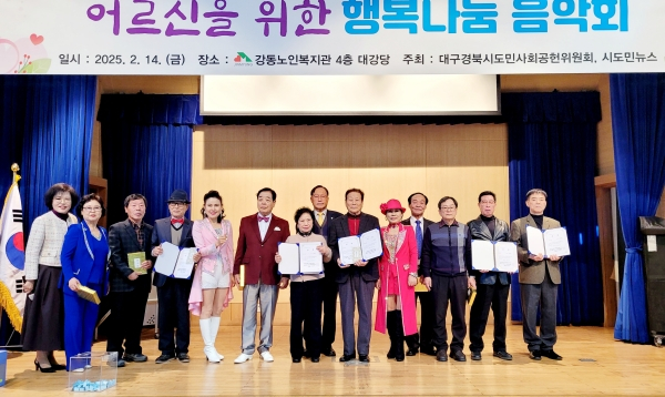 대구경북시도민 사회공헌위원회는 2월14일, 강동노인복지관에서 지역 어르신 270분을 모시고 ‘행복나눔음악회’를 가졌다.