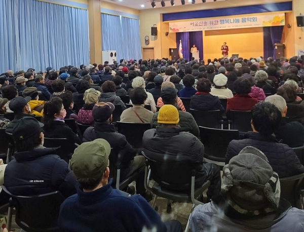 | ↑↑ 대구경북시도민 사회공헌위원회는 2월14일, 강동노인복지관에서 지역 어르신 270분을 모시고 ‘행복나눔음악회’를 가졌다. |