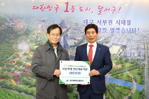 대구 달서구(구청장 이태훈)가 아동학대 피해 아동의 신속한 치료와 위기아동 발굴 및 학대 예방을 위해 위드병원(대표원장 채성수)을 달서구 아동학대 전담의료기관으로 추가 지정하고 지정서를 전달했다고 밝혔다.