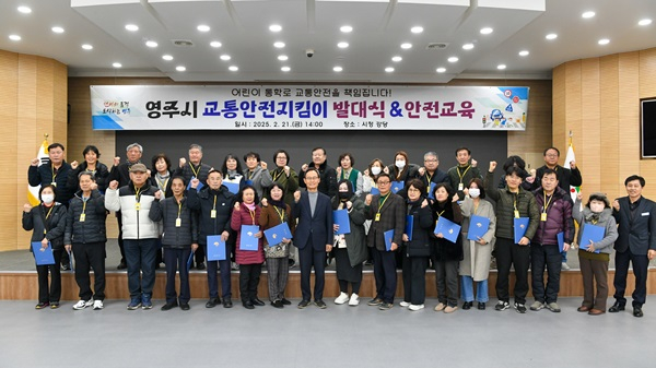 영주시는 21일 시청 강당에서 ‘2025년도 영주시 교통안전지킴이 발대식’을 개최하고, 초등학교 개학 시즌에 맞춰 지킴이 활동을 재개했다.