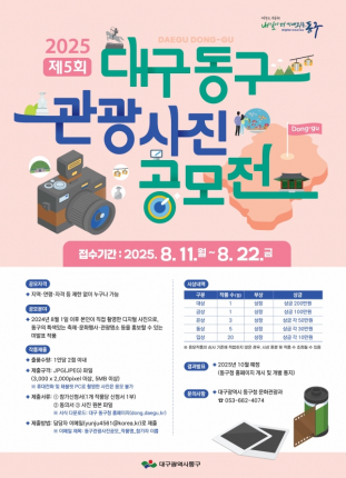 이번 사진 공모전은 대구 동구의 희소성 있는 축제·문화행사·관광명소를 대상으로 하며, 지역·연령·자격에 제한 없이 누구나 참여 가능하다.