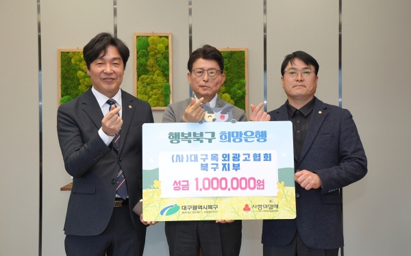 한편, 전달된 성금은 대구사회복지공동모금회를 통하여 북구청 후원사업인 행복북구 희망은행 후원사업비로 사용 될 예정이다.