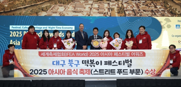 대구 북구(구청장 배광식)를 대표하는 ‘떡볶이 페스티벌’이 3월 20일 경주시 화백컨벤션센터에서 열린 ‘2025 세계축제협회 피너클 어워즈 및 아시아 축제도시 컨퍼런스’에서 아시아 페스티벌 어워즈 ‘2025 아시아 음식축제 스트리트 푸드 부문’을 수상하는 영예를 안았다.
