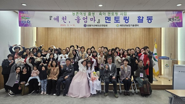 예천군농업기술센터(소장 손석원)는 22일, 50명의 회원들이 참석한 가운데 농촌가정 출생·육아 멘토링 사업의 일환으로 ‘예천, 울엄마’ 멘토링 활동 개회식을 성황리에 개최했다.
