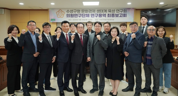 대구광역시 수성구의회 의원연구단체 '수성구형 문화경제 생태계 육성 연구회'는 지난 24일, 수성구의회 제2회의실에서 연구용역 최종보고회를 개최했다.