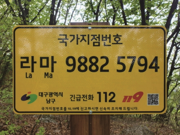 국가지점번호는 국토 및 이와 인접한 해양을 격자형으로 일정하게 구획한 지점마다 부여된 번호로, 조난 및 긴급상황 발생 시 위치를 정확히 알리는 위치 표시번호이다.