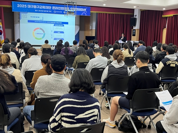 (재)대구동구교육재단(이사장 윤석준)은 지난 3일, 구청 대회의실에서 지역 학생 및 학부모 100여 명을 대상으로 ‘2025 대구동구교육재단 온라인 멘토링’ 오리엔테이션을 개최했다.