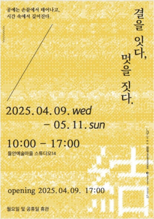 이번 전시에서는 들안예술마을 스튜디오 초빙작가 이은지(규방공예), 김수지(텍스타일), 정병밀(옻칠공예)의 작품을 통해, ‘결’과 ‘멋’이 공예 속에서 어떻게 드러나는지를 탐색할 수 있다.