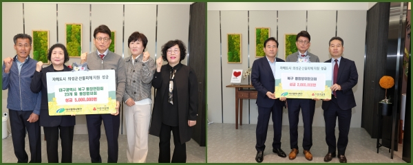 | ↑↑ 산불 피해 복구 지원 성금 전달식(바르게살기운동 북구협의회, 주민자치위원협의회) |