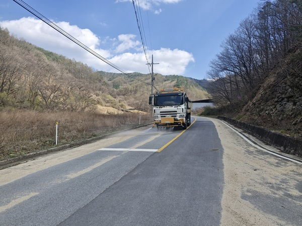 정비반은 2개조로 나누어 미세먼지 발생과 미끄럼 사고를 예방하기 위해 스키로더 및 살수차 등을 동원하여 주요 도로와 재ㆍ고개 구간을 중심으로 도로노면과 배수로 등을 집중 청소한다.