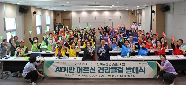 대구 남구는 AI-IoT기반의 어르신 건강관리사업 참여자 등을 대상으로 지난 18일 ‘AI기반 어르신 건강클럽’ 발대식을 개최했다.