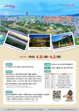 대구 달서구(구청장 이태훈)는 지역의 도시·자연경관, 문화유산, 축제·행사 등 달서구의 가치와 매력을 담은 사진을 발굴·기록하고자 ‘2025 희망달서 사진공모전’을 개최한다.