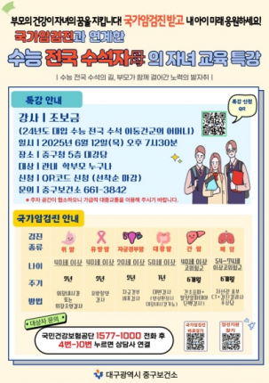 | ↑↑ 중구, 학부모 대상 자녀교육 특강 개최… 암검진 인식 제고 병행 포스터 |