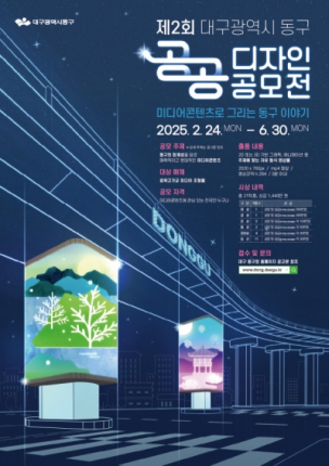 대구 동구청(구청장 윤석준)은 제2회 대구광역시 동구 공공디자인 [미디어 콘텐츠] 공모전 접수 기간을 이달 30일까지 연장한다.