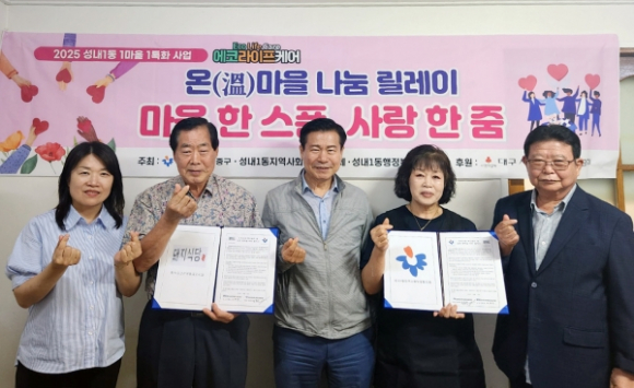 이번 협약으로 성내1동 지역사회보장협의체에서 추진 중인 ‘온(溫)마을 나눔릴레이’ 사업을 적극 홍보·지원하고, 복지 사각지대 발굴에 앞장서 매월 5만 원 상당의 4인 식사를 저소득층에게 제공하기로 했다.