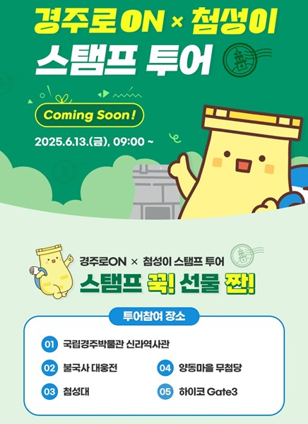 앞서 경주시는 이달 13일부터 통합관광플랫폼 ‘경주로ON’을 기반으로 ‘2025 APEC 기념 경주로ON × 첨성이 스탬프투어’를 운영하고 있다.