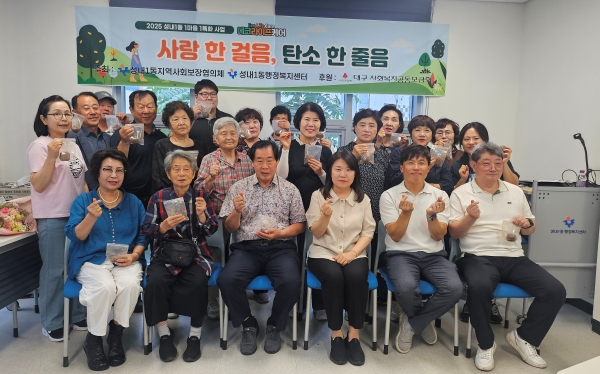 대구 중구 성내1동 지역사회보장협의체(위원장 정복찬)는 지난 24일 성내1동 행정복지센터(동장 장미숙)에서 어르신들과 함께하는 1마을 1특화사업의 두 번째 프로그램 ‘사랑 한 걸음, 탄소 한 줄음’을 운영했다.