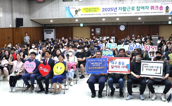 대구 달서구(구청장 이태훈)는 지난 25일 구청 대강당에서 관내 2개 지역자활센터 참여자 230여 명을 대상으로 ‘2025년 지역자활센터 참여자 워크숍’을 개최했다.