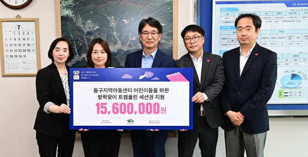 후원금은 동구 관내 26개 지역아동센터 총 620명의 아동들에게 ‘방학맞이 나들이 선물’로 트램폴린파크 세션권으로 제공될 예정이다.