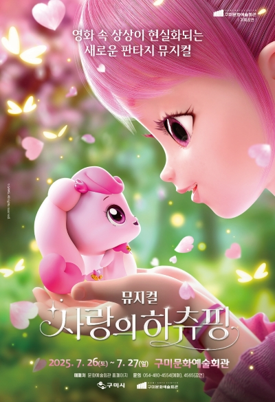 구미시문화예술회관은 오는 26일(토)과 27일(일), 온 가족이 함께 즐길 수 있는 가족뮤지컬 <사랑의 하츄핑>을 대공연장에서 선보인다. 여름방학을 맞아 준비된 이번 공연은 이틀간 총 5회에 걸쳐 진행되며, 환상적인 무대와 감동적인 이야기로 가족 단위 관객들에게 특별한 시간을 선사할 예정이다.
