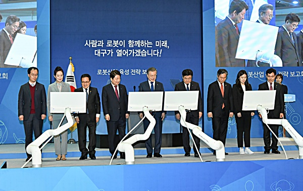 행사는 ▶문재인 대통령 인사 ▶산업부 장관의 ‘로봇산업 발전방안’ 발표 ▶대구시장의 ‘로봇산업 선도도시 대구’ 비전 발표 ▶로봇관계자 현장목소리 청취 ▶퍼포먼스 순으로 진행됐다.