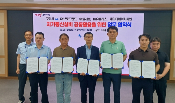 이번 협약은 구미시가 추진 중인 ‘자가통신망 구축사업’의 일환으로, 시설 중복투자를 방지하고 도시미관을 개선하자는 데 통신사업자들과 뜻을 모은 것이다. 구체적으로는 기 구축된 통신관로와 통신주 등을 별도 임차료 없이 공동 활용하고, 신규 통신설비 설치 시에도 공사비를 분담하는 방식으로 공동 구축하기로 합의했다.