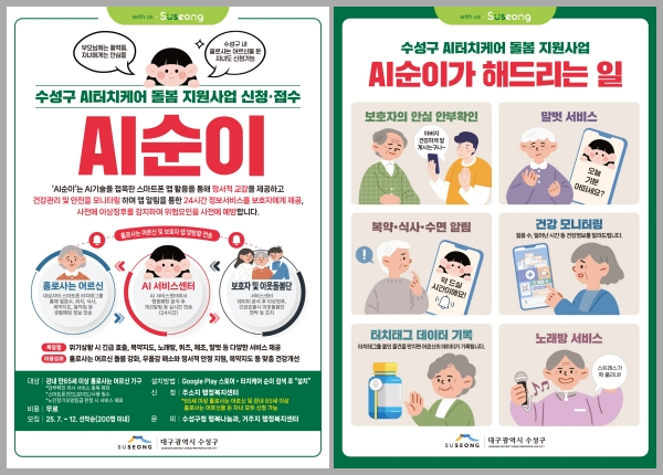 | ↑↑ 수성구 AI터치케어 돌봄 지원사업 포스터 신청 접수 포스터 |