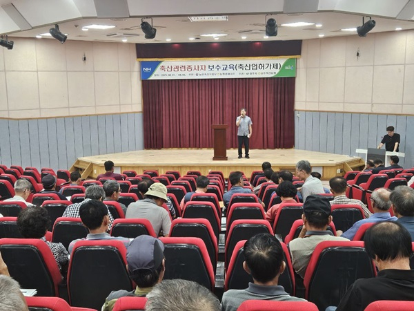 상주시(시장 강영석)와 상주축산업협동조합(조합장 김용준)은 8월 1일(금) 경북대학교 상주캠퍼스에서 축산법 및 가축전염예방법 시행에 따라 구제역, 고병원성AI 등 악성가축질병을 예방하고 지속가능한 축산업을 육성하기위한 축산관련 종사자 보수교육을 실시했다.