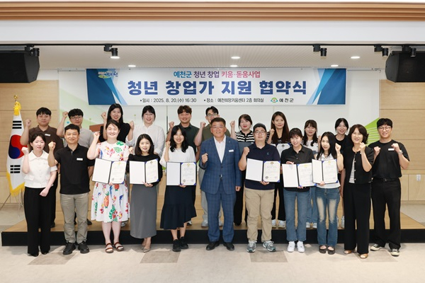 예천군(군수 김학동)은 20일, 예천희망키움센터 2층 회의실에서 ‘예천군 청년 창업 키움·돋움사업’을 통해 선정된 14팀의 청년 창업가들이 참여한 가운데 ‘청년창업 키움 돋움사업 지원 협약식’을 개최했다.